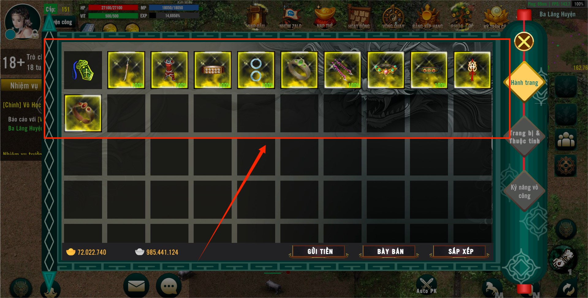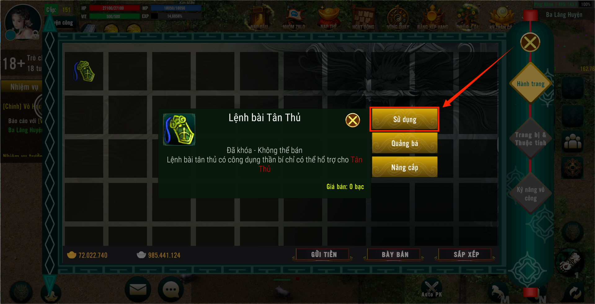 – Bước 4: Mở hành trang chọn lệnh bài tân thủ