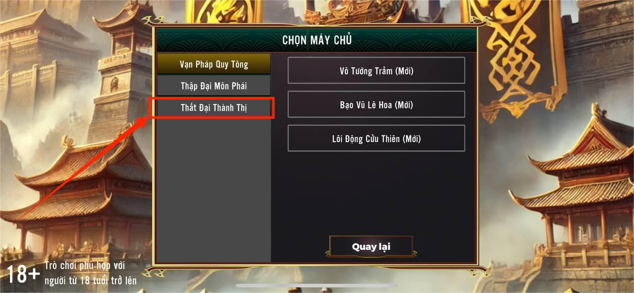 – Bước 1: Đăng nhập vào game chọn cụm server